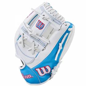 Finished in a white colorway with subtle blue and red accents, this glove delivers a modern, professional look. Bold Wilson branding adds a premium touch, making the glove stand out on the field without sacrificing performance.