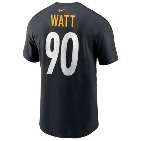 Show your passion for the NFL and support for one of the league's top players with the official Nike T.J. Watt T-shirt from the Pittsburgh Steelers. Designed in a sleek black color, this T-shirt features Watt's name and number, symbolizing power and determination on the field. Made with soft, breathable cotton, it ensures optimal comfort, perfect for game days or casual outings. This officially licensed NFL product is a must-have for any Pittsburgh Steelers fan, offering both style and authenticity. Available in various sizes, this T-shirt is ideal for completing your collection or gifting to a football enthusiast.