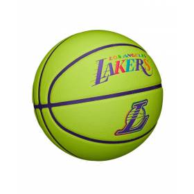 El Wilson NBA Los Angeles Lakers Team Neon Basketball luce con orgullo los colores oficiales del equipo angelino. Con un tono amarillo neón y franjas en morado, es un balón que destaca en cualquier cancha. El logotipo oficial de los Lakers garantiza autenticidad y convierte este balón en una pieza imprescindible para los aficionados de la NBA.