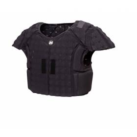 El chaleco se ajusta al cuerpo como una camiseta, fabricado con espuma de alta densidad de calidad automotriz, 20 % más eficaz que la espuma EVA convencional. Sustituye la clásica hombrera con tapa de brazo, proporcionando una movilidad excepcional en cualquier posición: mariscal de campo (quarterback), receptor, corredor o defensa.