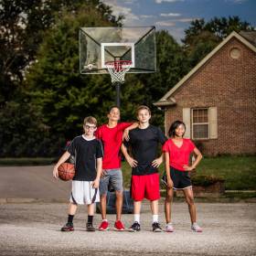 Una Canasta de baloncesto móvil para moverlo a voluntad.